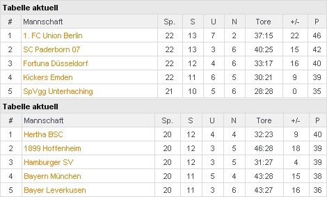 Ein Blick auf die Tabellen der wichtigsten Ligen der Welt ;-)